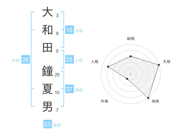 大和田 鐘夏男さんを姓名の画数から五運を鑑定
