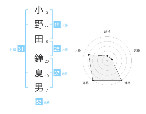 小野田 鐘夏男さんを姓名の画数から五運を鑑定