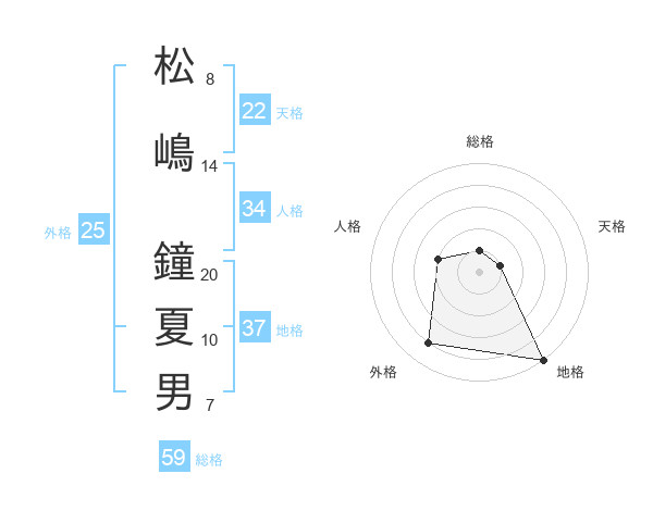 松嶋 鐘夏男さんを姓名の画数から五運を鑑定