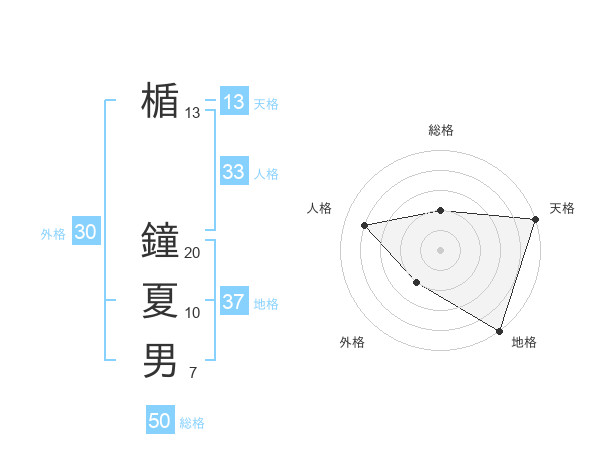 楯 鐘夏男さんを姓名の画数から五運を鑑定