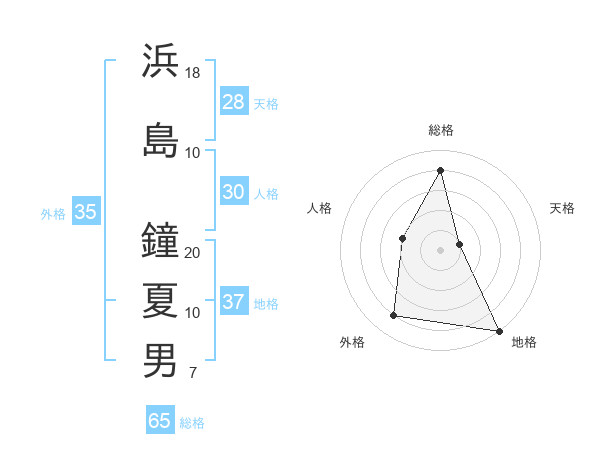 浜島 鐘夏男さんを姓名の画数から五運を鑑定