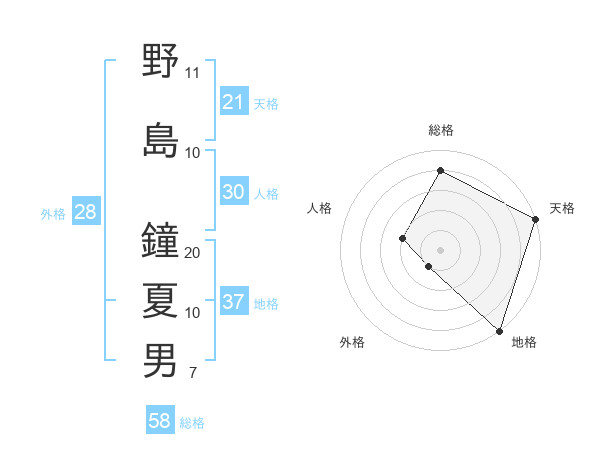 野島 鐘夏男さんを姓名の画数から五運を鑑定