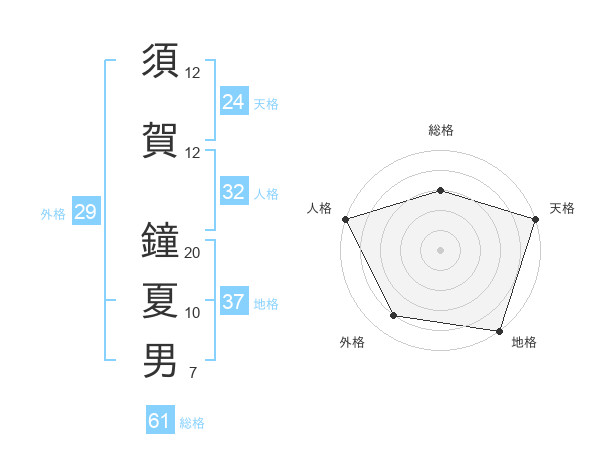 須賀 鐘夏男さんを姓名の画数から五運を鑑定