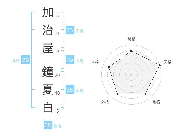 加治屋 鐘夏白さんを姓名の画数から五運を鑑定