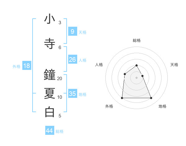 小寺 鐘夏白さんの地格は35画の4点!