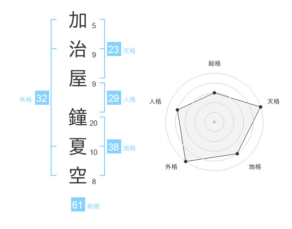 加治屋 鐘夏空さんを姓名の画数から五運を鑑定