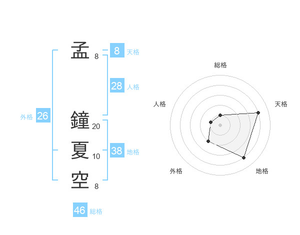 孟 鐘夏空さんを姓名の画数から五運を鑑定