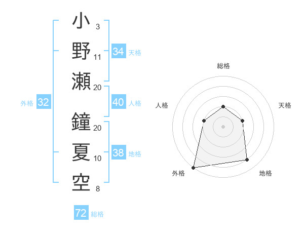 小野瀬 鐘夏空さんの外格は32画の5点!