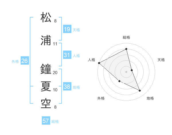松浦 鐘夏空さんの総格は57画の4点