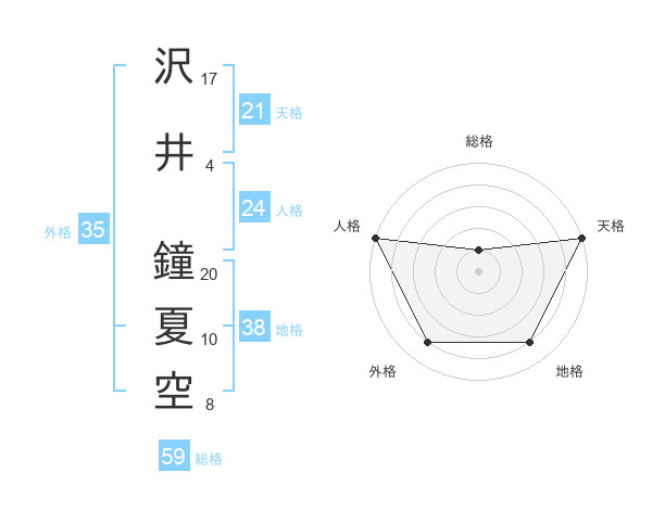 沢井 鐘夏空さんを姓名の画数から五運を鑑定