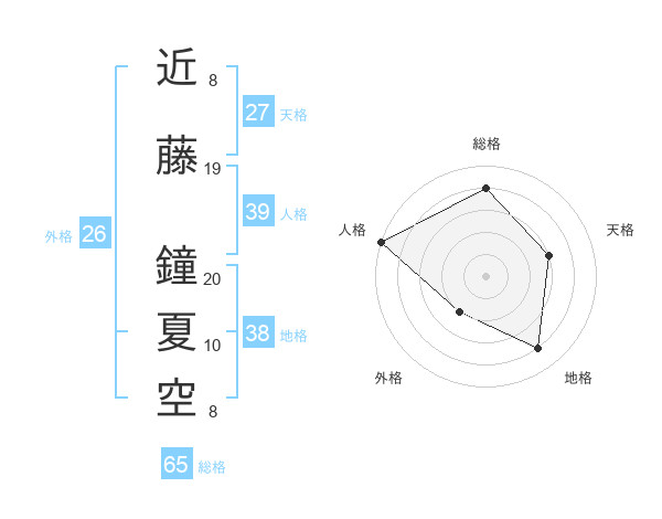 近藤 鐘夏空さんを姓名の画数から五運を鑑定