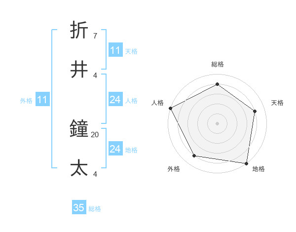 折井 鐘太さんを姓名の画数から五運を鑑定
