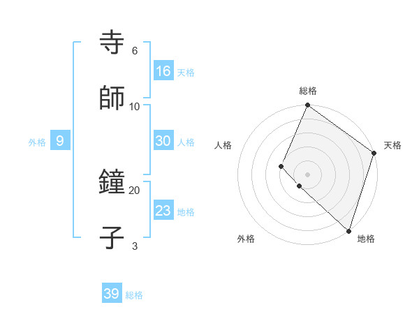 寺師 鐘子さんの総格は39画の5点!