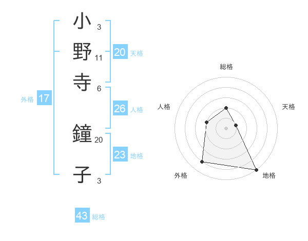 小野寺 鐘子さんの天格は20画の1点!