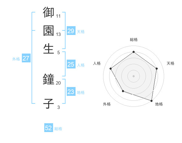 御園生 鐘子さんを姓名の画数から五運を鑑定