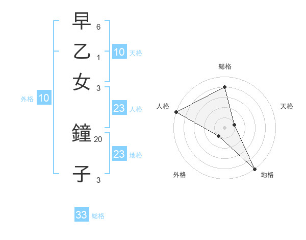 早乙女 鐘子さんを姓名の画数から五運を鑑定