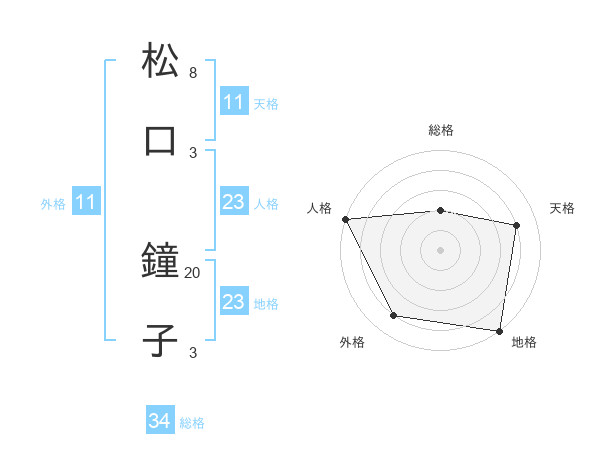 松口 鐘子さんの総格は34画の2点!
