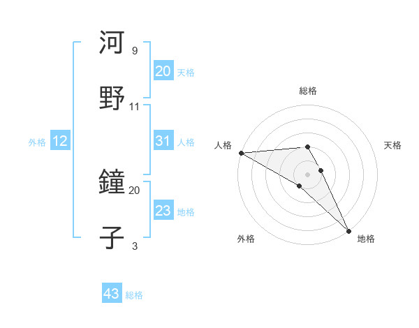 河野 鐘子さんの総格は43画の2点!