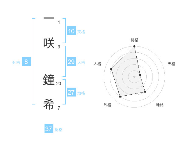 一咲 鐘希さんを姓名の画数から五運を鑑定