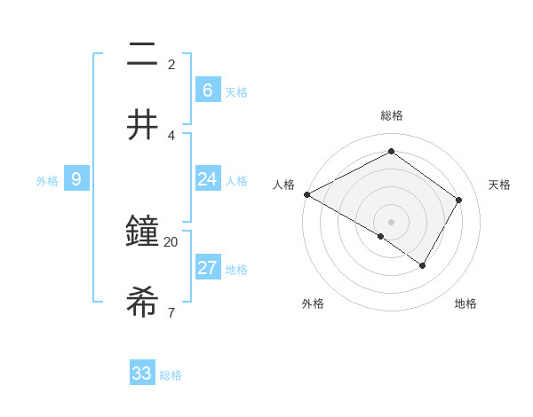 二井 鐘希さんの天格は6画の4点!