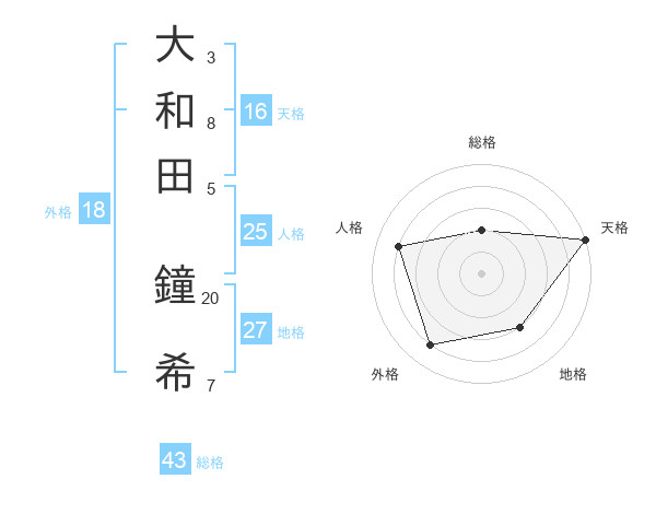 大和田 鐘希さんを姓名の画数から五運を鑑定