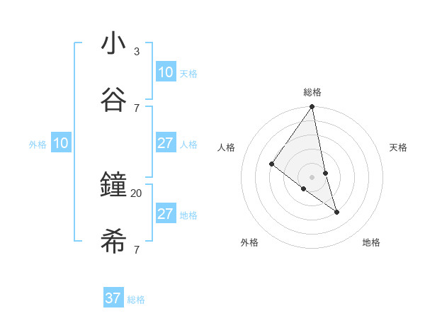 小谷 鐘希さんを姓名の画数から五運を鑑定