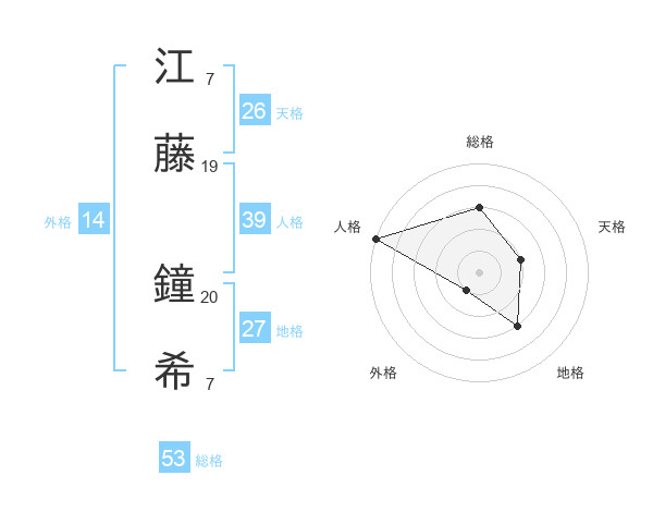 江藤 鐘希さんの総格は53画の3点!