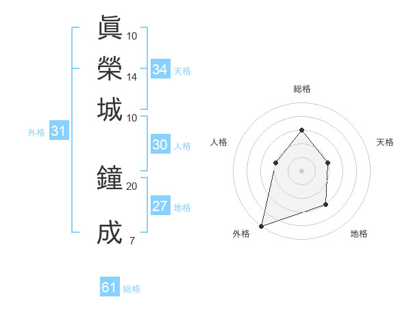 眞榮城 鐘成さんを姓名の画数から五運を鑑定