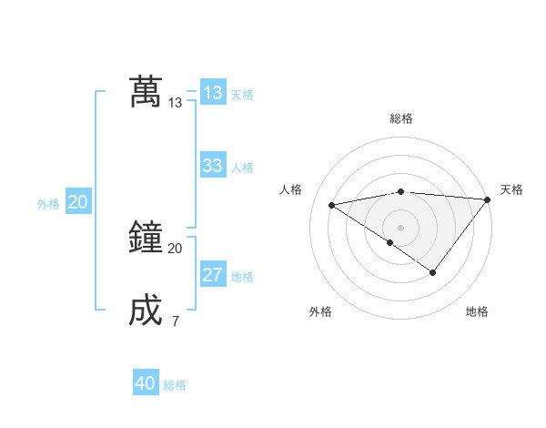 萬 鐘成さんの総格は40画の2点!