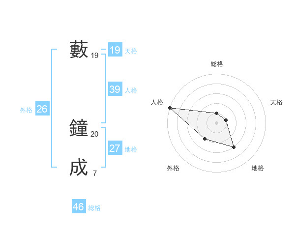 藪 鐘成さんを姓名の画数から五運を鑑定