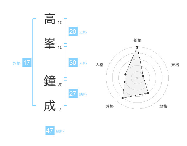 高峯 鐘成さんを姓名の画数から五運を鑑定