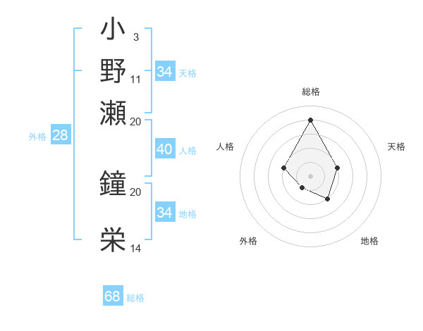 小野瀬 鐘栄さんを姓名の画数から五運を鑑定