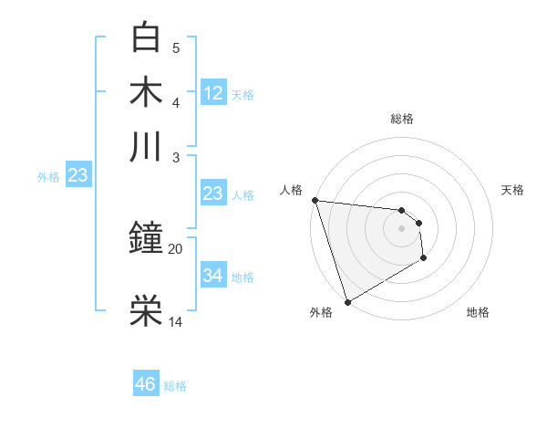白木川 鐘栄さんを姓名の画数から五運を鑑定