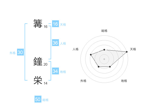 篝 鐘栄さんの総格は50画の2点!
