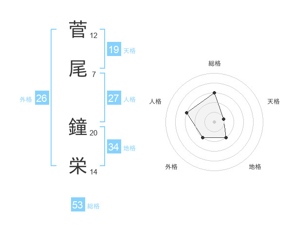 菅尾 鐘栄さんの総格は53画の3点!