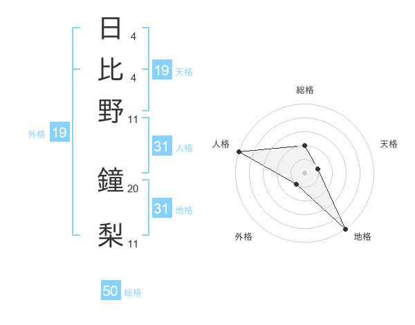 日比野 鐘梨さんを姓名の画数から五運を鑑定