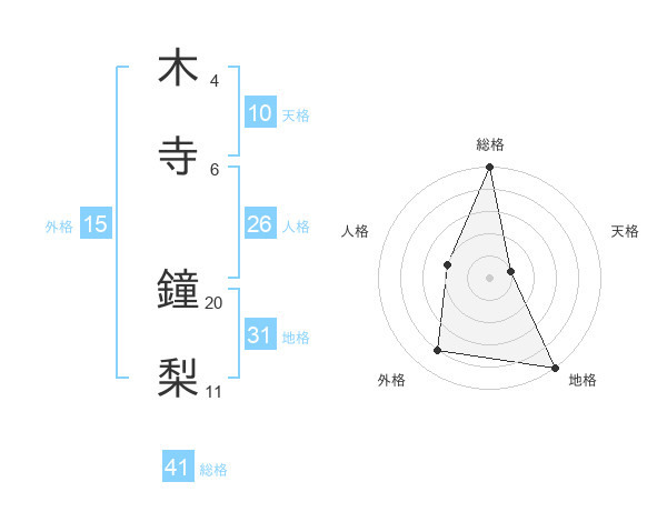 木寺 鐘梨さんを姓名の画数から五運を鑑定