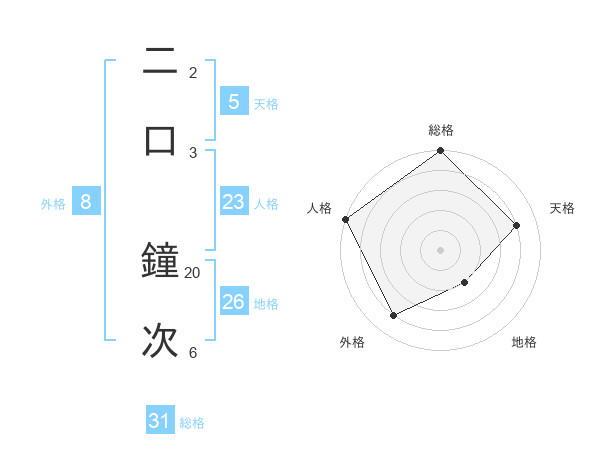 二口 鐘次さんを姓名の画数から五運を鑑定