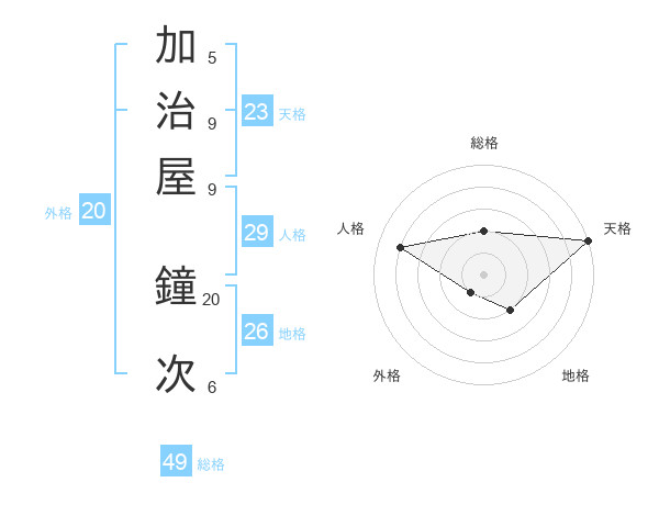 加治屋 鐘次さんを姓名の画数から五運を鑑定