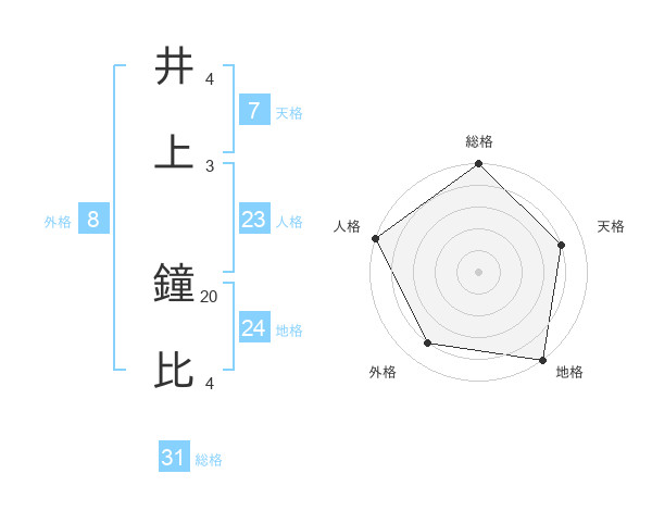 井上 鐘比さんの総格は31画の5点!