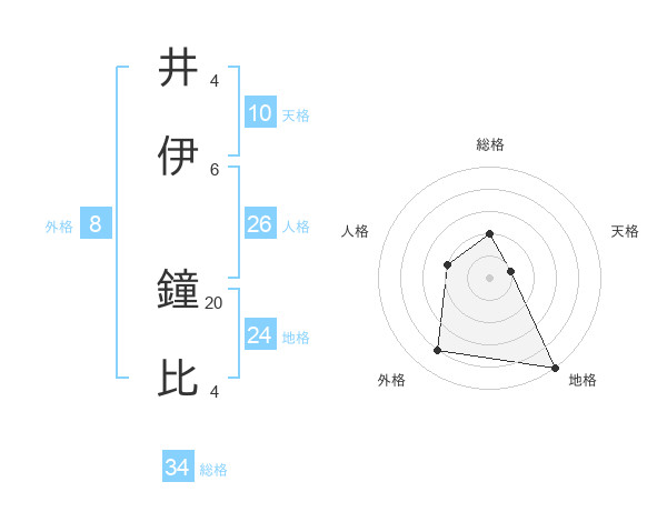 井伊 鐘比さんを姓名の画数から五運を鑑定