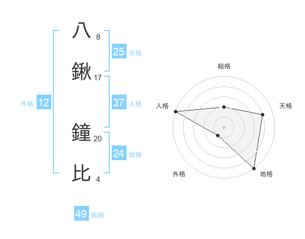 八鍬 鐘比さんを姓名の画数から五運を鑑定