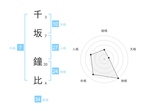 千坂 鐘比さんを姓名の画数から五運を鑑定