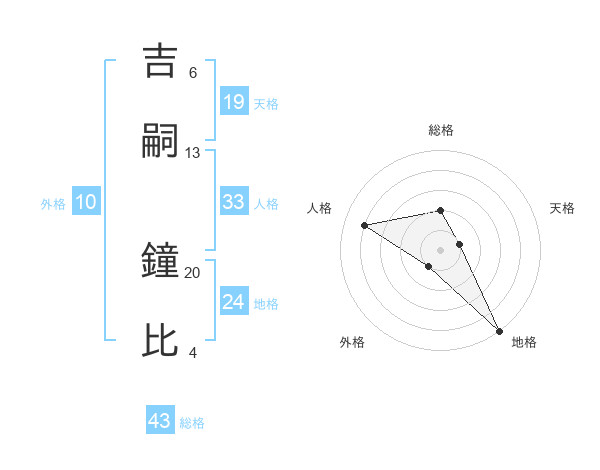 吉嗣 鐘比さんの名前の鑑定結果は!
