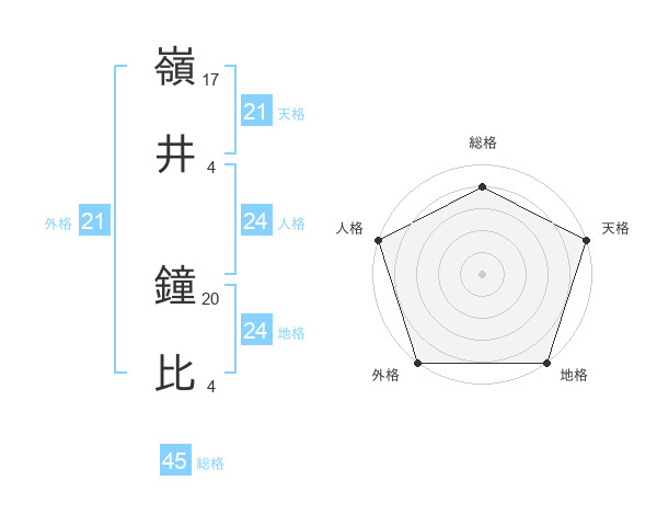 嶺井 鐘比さんの外格は21画の5点!
