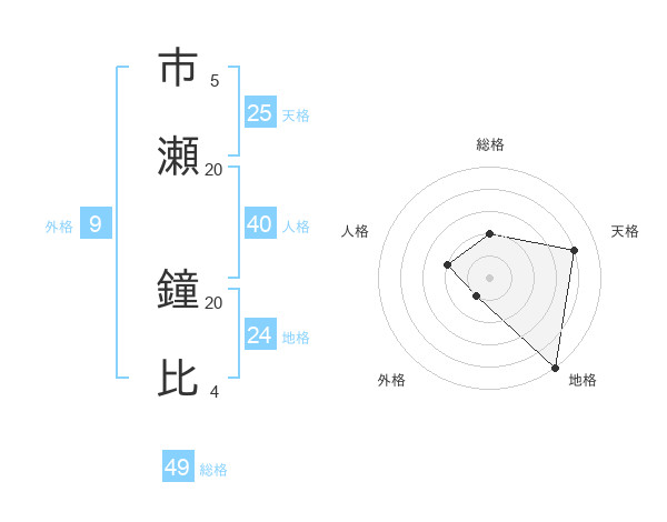 市瀬 鐘比さんの地格は24画の5点!
