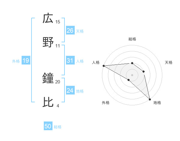 広野 鐘比さんを姓名の画数から五運を鑑定