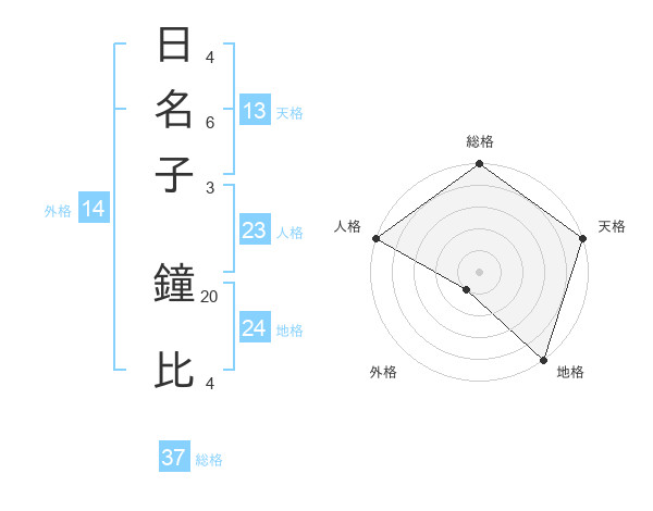 日名子 鐘比さんを姓名の画数から五運を鑑定