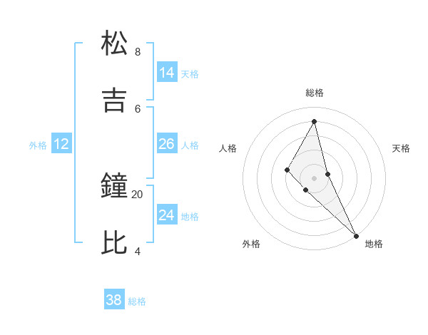 松吉 鐘比さんの総格は38画の4点!