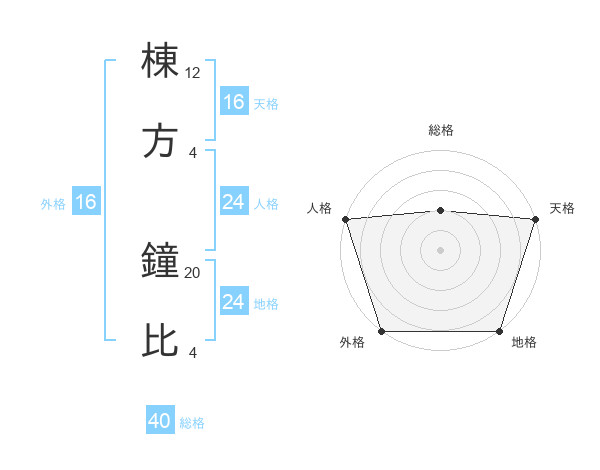 棟方 鐘比さんを姓名の画数から五運を鑑定